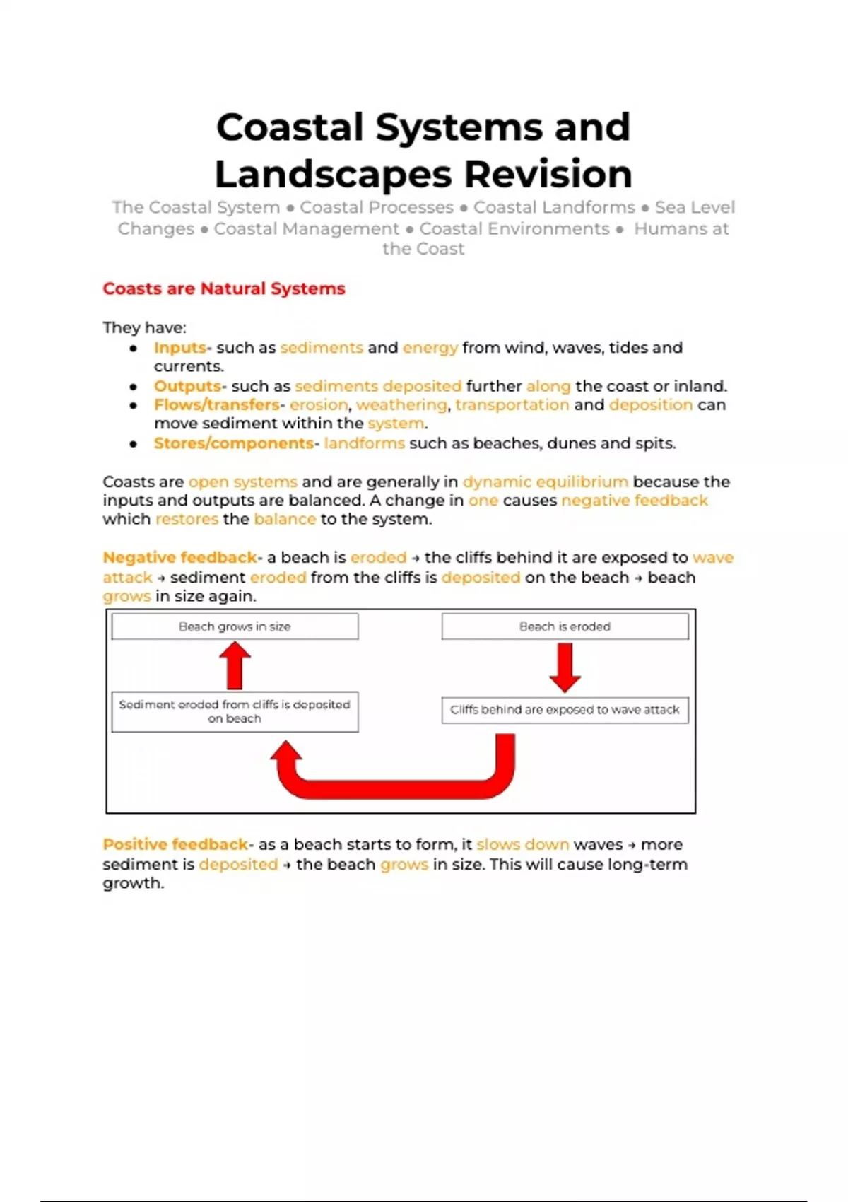 Negative feedback- a beach is eroded → the cliffs behind it are exposed to wave