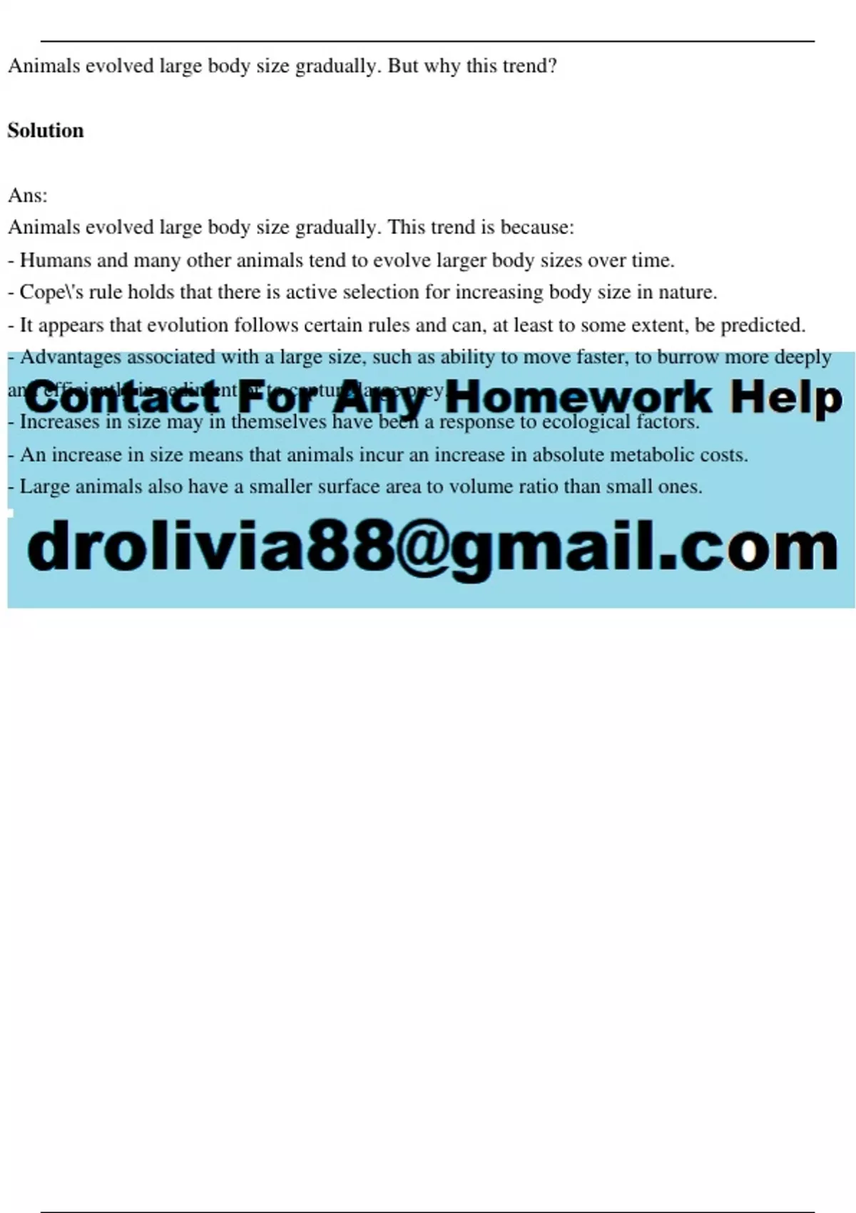 - Humans and many other animals tend to evolve larger body sizes over time.