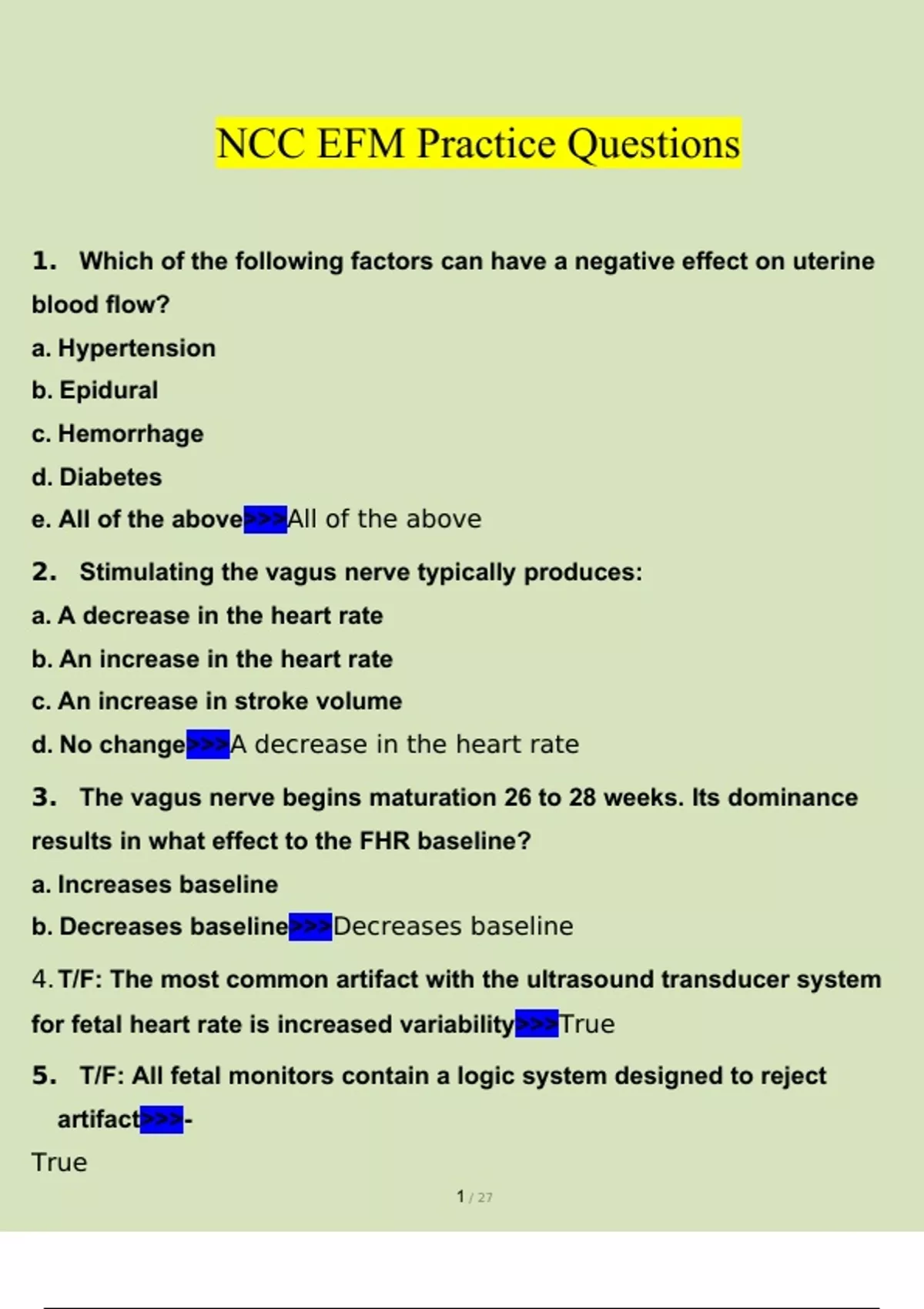 NCC Electronic Fetal Monitoring Exam Practice Questions and Answers 2023 (100% Verified Answers by Expert) NCC Electronic Fetal Monitoring Exam Practice Questions and Answers 2023 (100% Verified Answers by Expert)