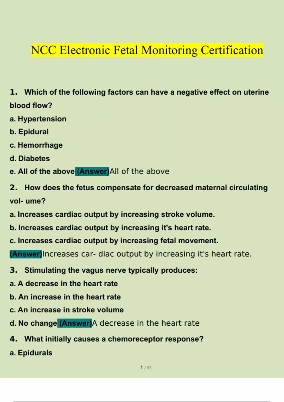 NCC Electronic Fetal Monitoring Certification Exam Questions and Answers 2023 (100% Verified Answers by Expert) NCC Electronic Fetal Monitoring Certification Exam Questions and Answers 2023 (100% Verified Answers by Expert)