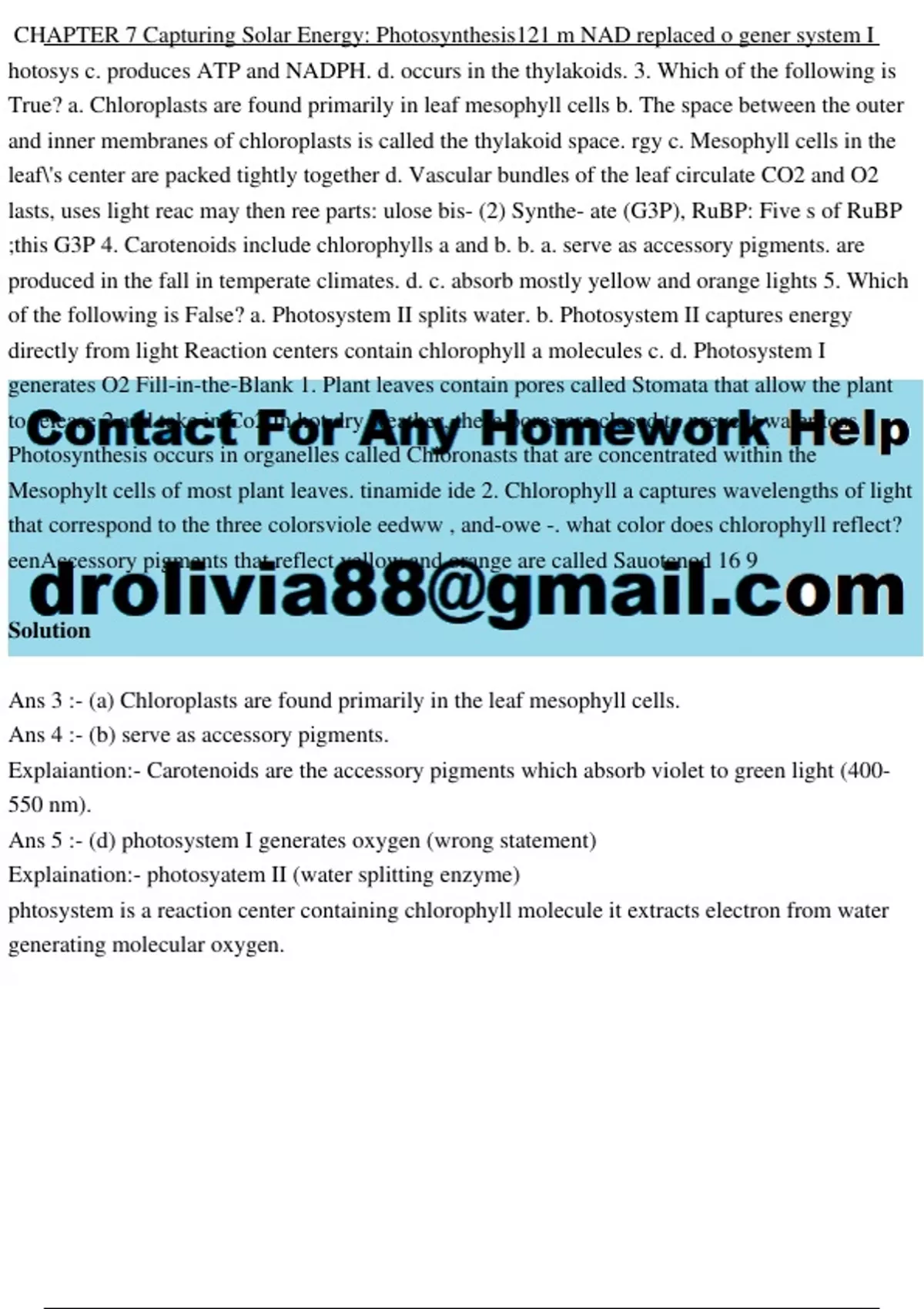 Ans 5 :- (d) photosystem I generates oxygen (wrong statement)