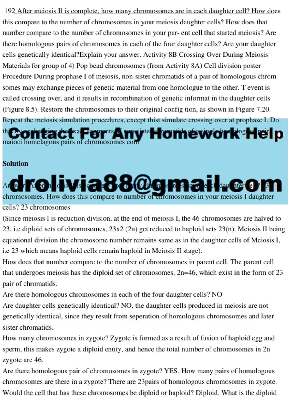 cells genetically identical?Explain your answer. Activity 8B Crossing Over During Meiosis