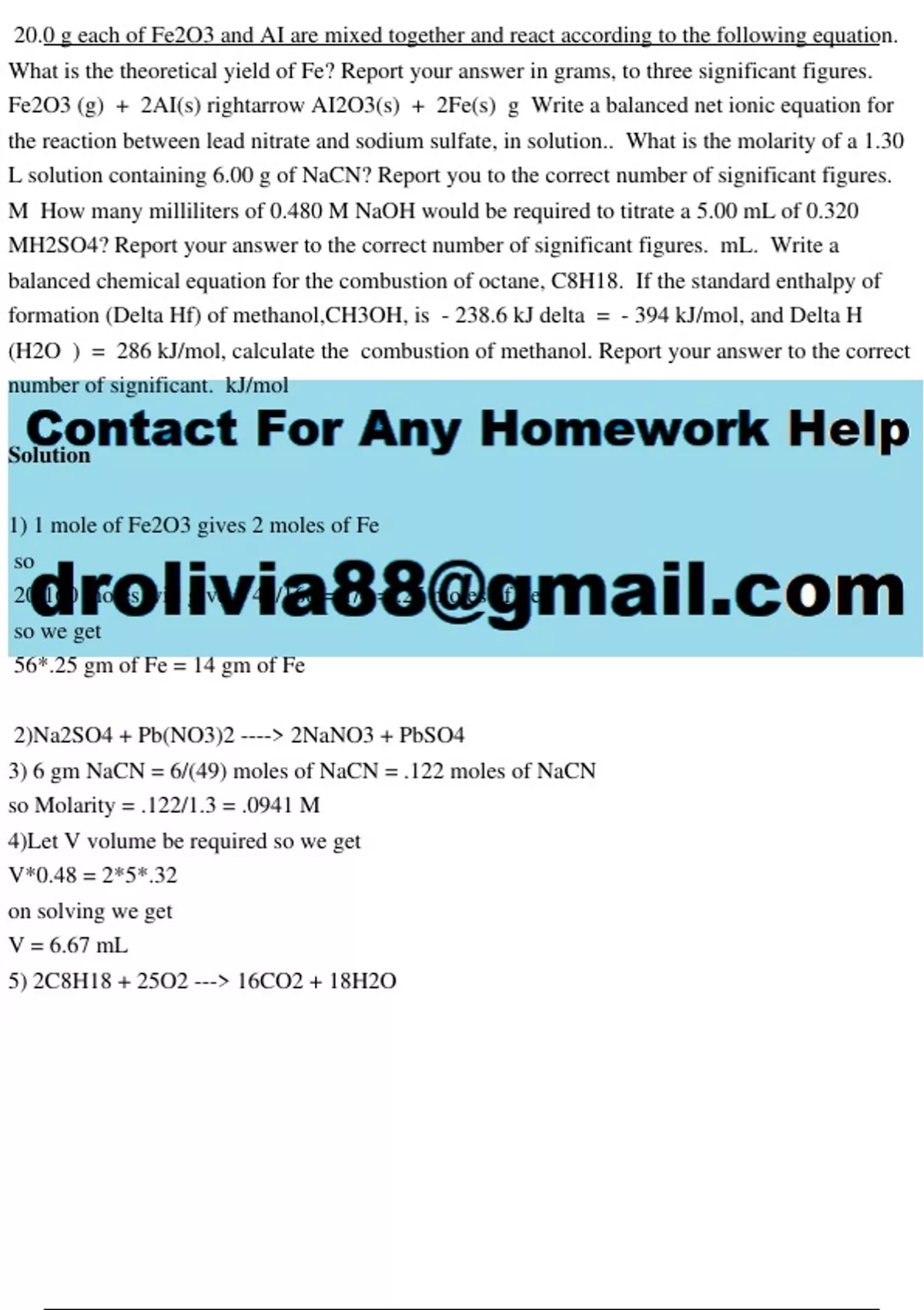 3) 6 gm NaCN = 6/(49) moles of NaCN = .122 moles of NaCN