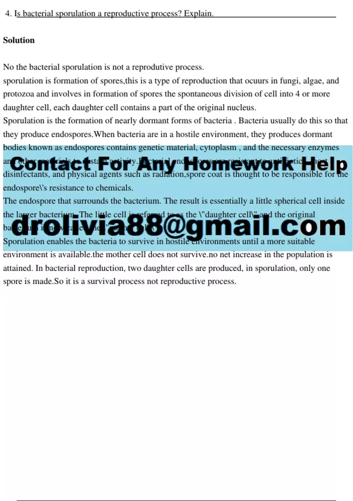 attained. In bacterial reproduction, two daughter cells are produced, in sporulation, only one
