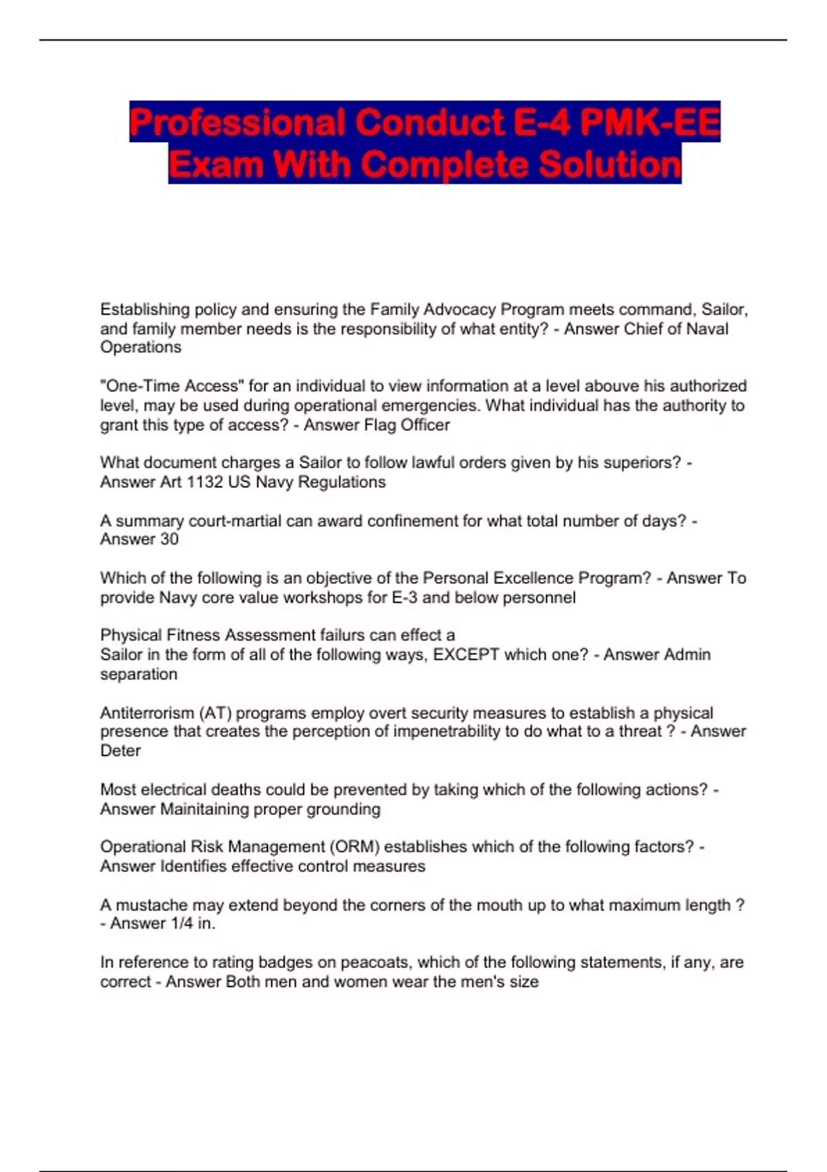 PMK-EE FOR E-4,E-5,E-6,E-7 PACKAGED EXAMS WITH COMPLETE SOLUTION