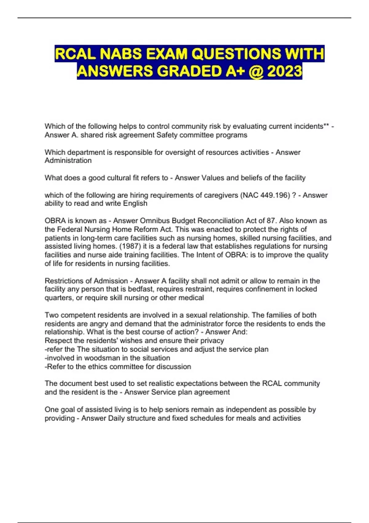 RCAL NABS EXAM QUESTIONS WITH ANSWERS GRADED A+ @ 2023