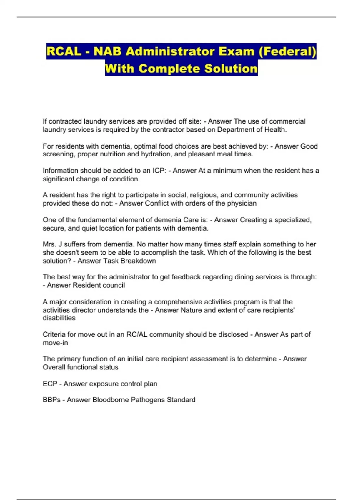 RCAL - NAB Administrator Exam (Federal) With Complete Solution...