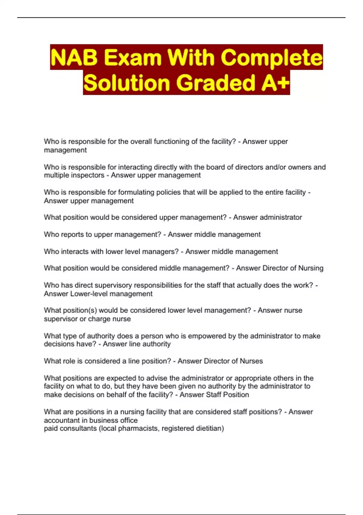 nab exam with complete solution graded a