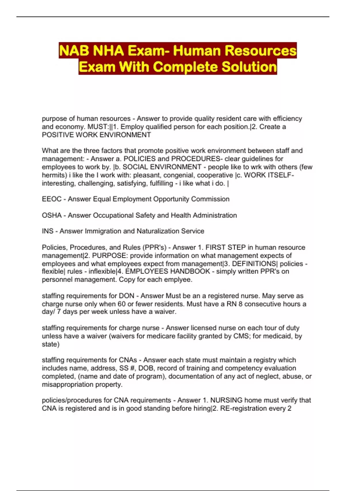 NAB NHA Exam- Human Resources Exam With Complete Solution...