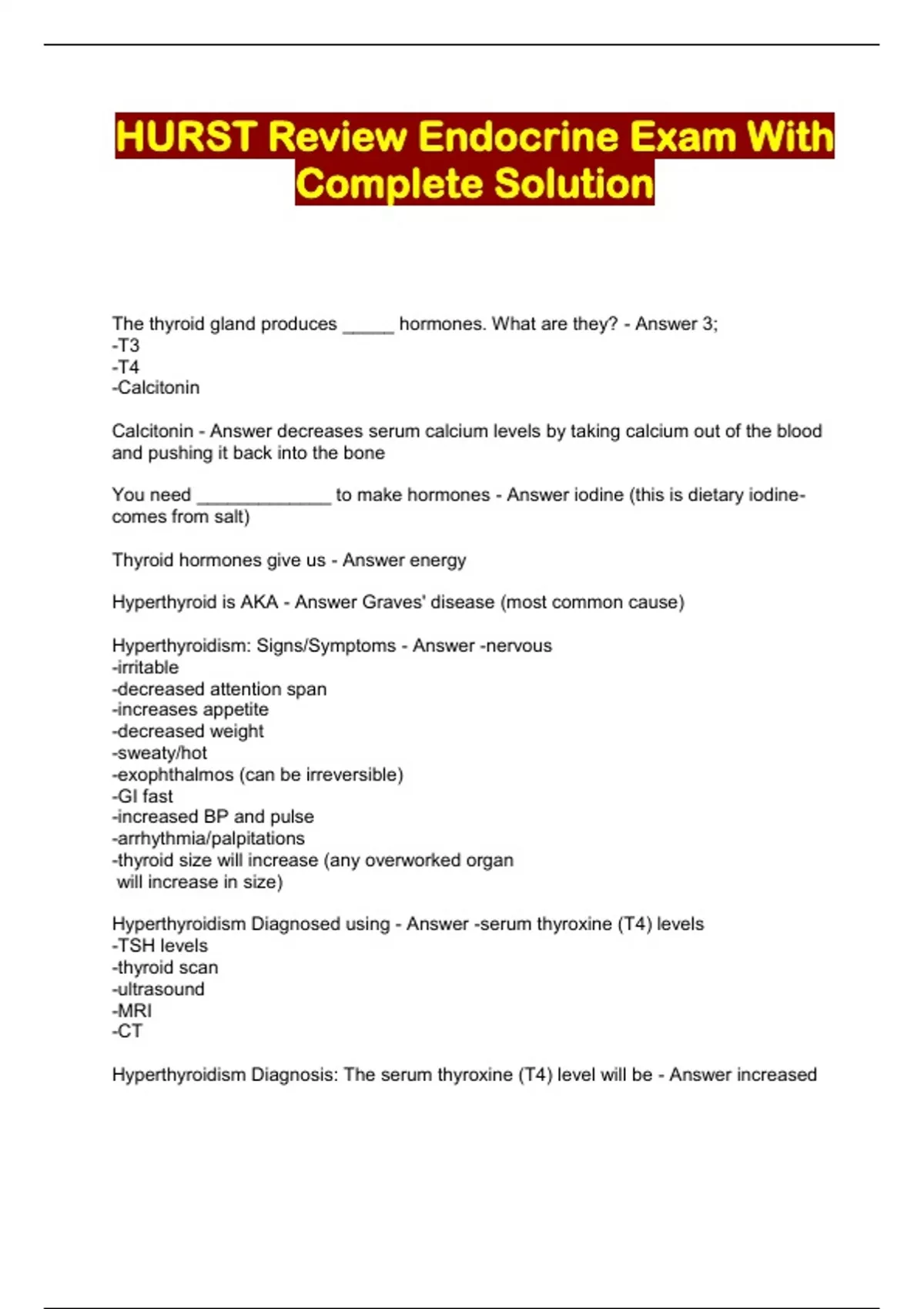 hurst review endocrine exam with complete solution