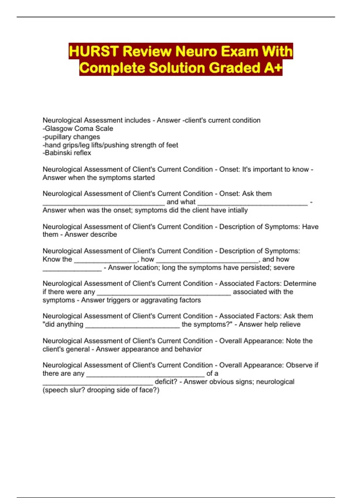 HURST Review Neuro Exam With Complete Solution Graded A+...