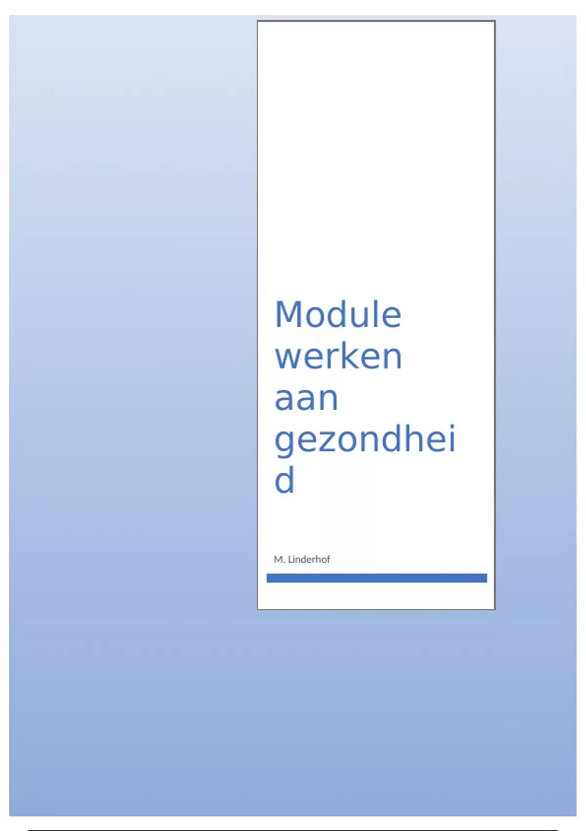 Onderstaand is de schriftelijke uitwerking van de module werken aan gezondheid te vinden. De