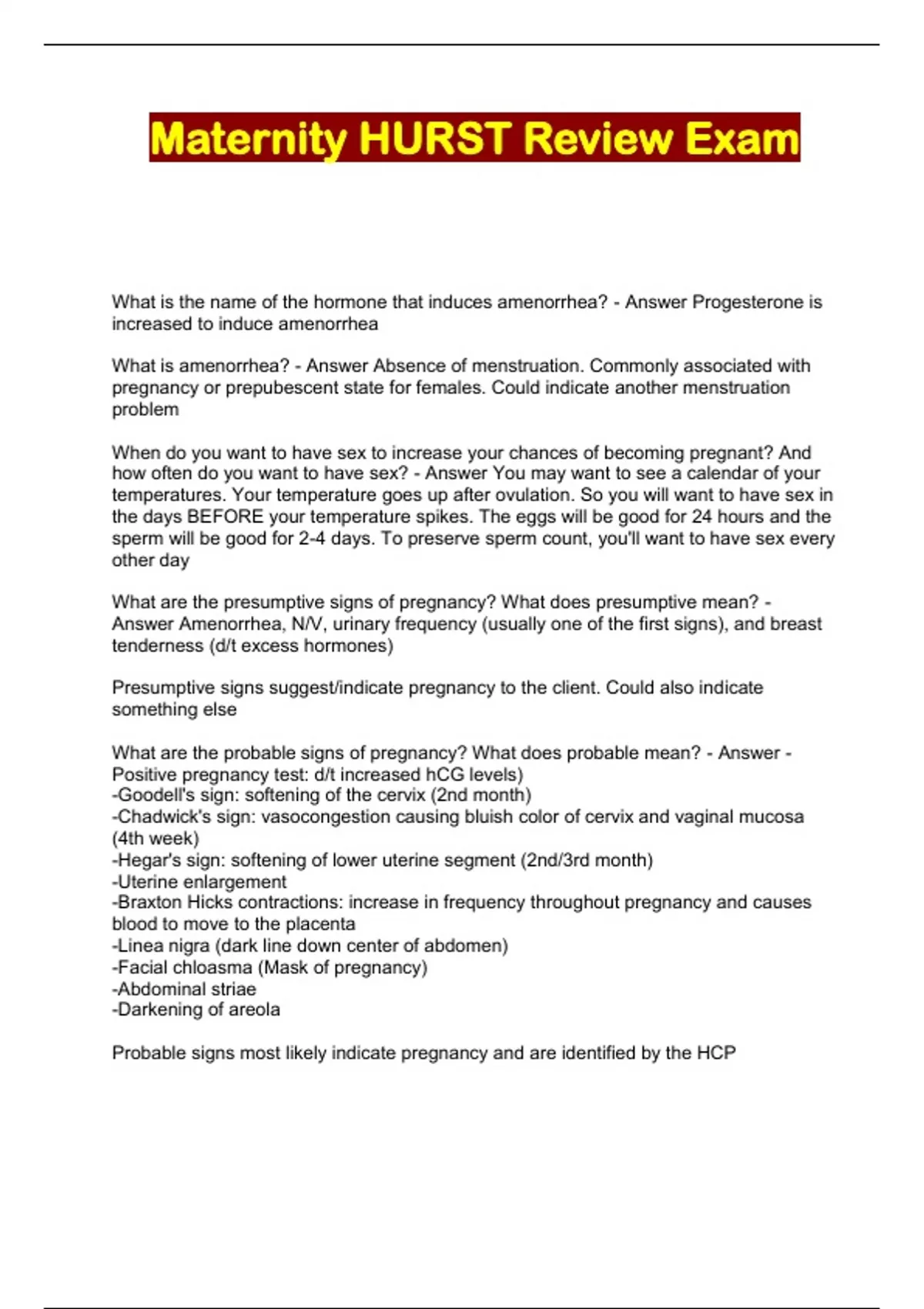 Maternity HURST Review Exam