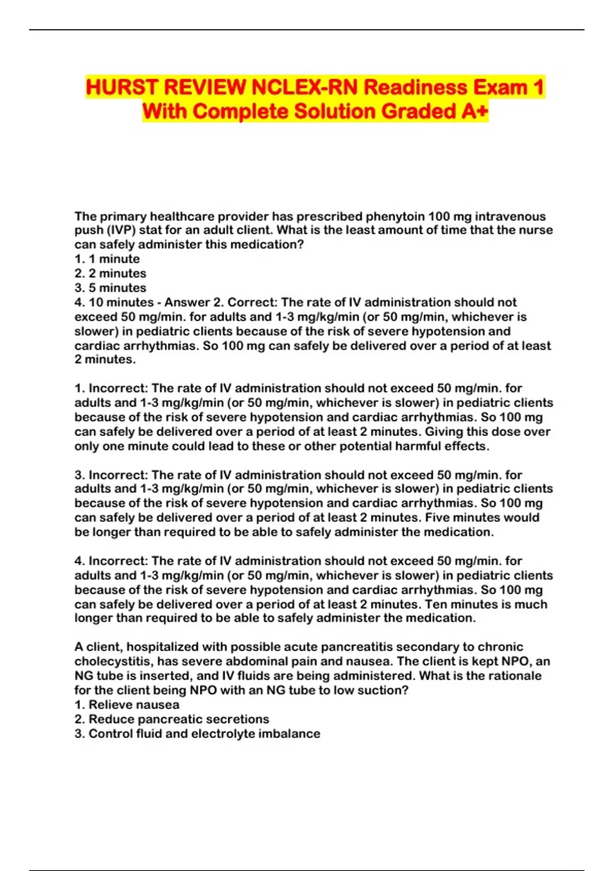 HURST REVIEW NCLEX-RN Readiness Exam 1 With Complete Solution Graded A+...