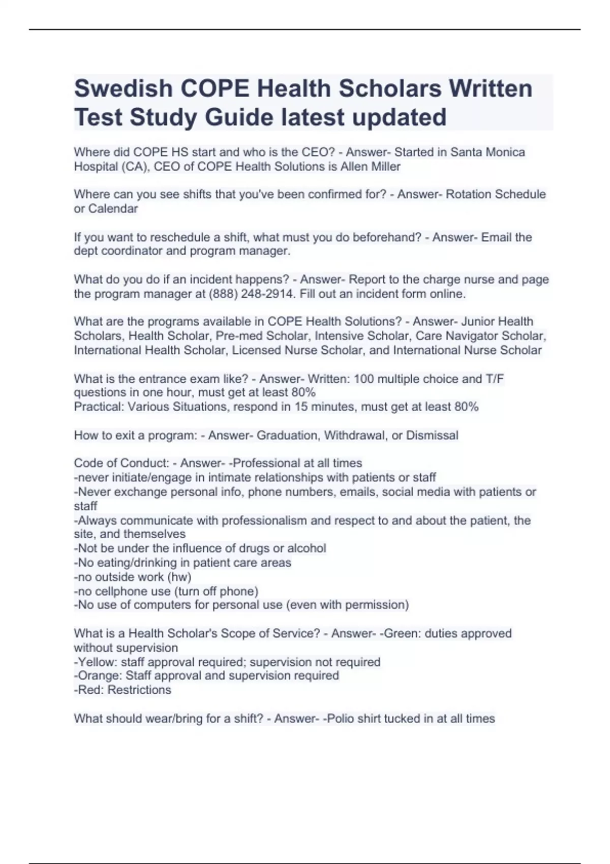 Swedish COPE Health Scholars Written Test Study Guide latest updated