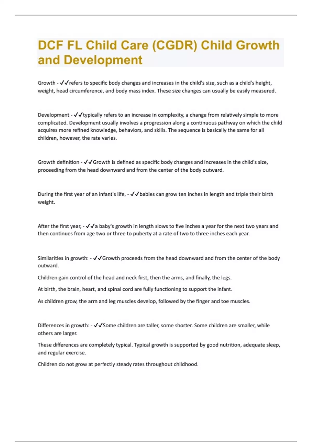 DCF FL Child Care (CGDR) Child Growth and Development| 184 Questions with 100 % correct Answers | Verified