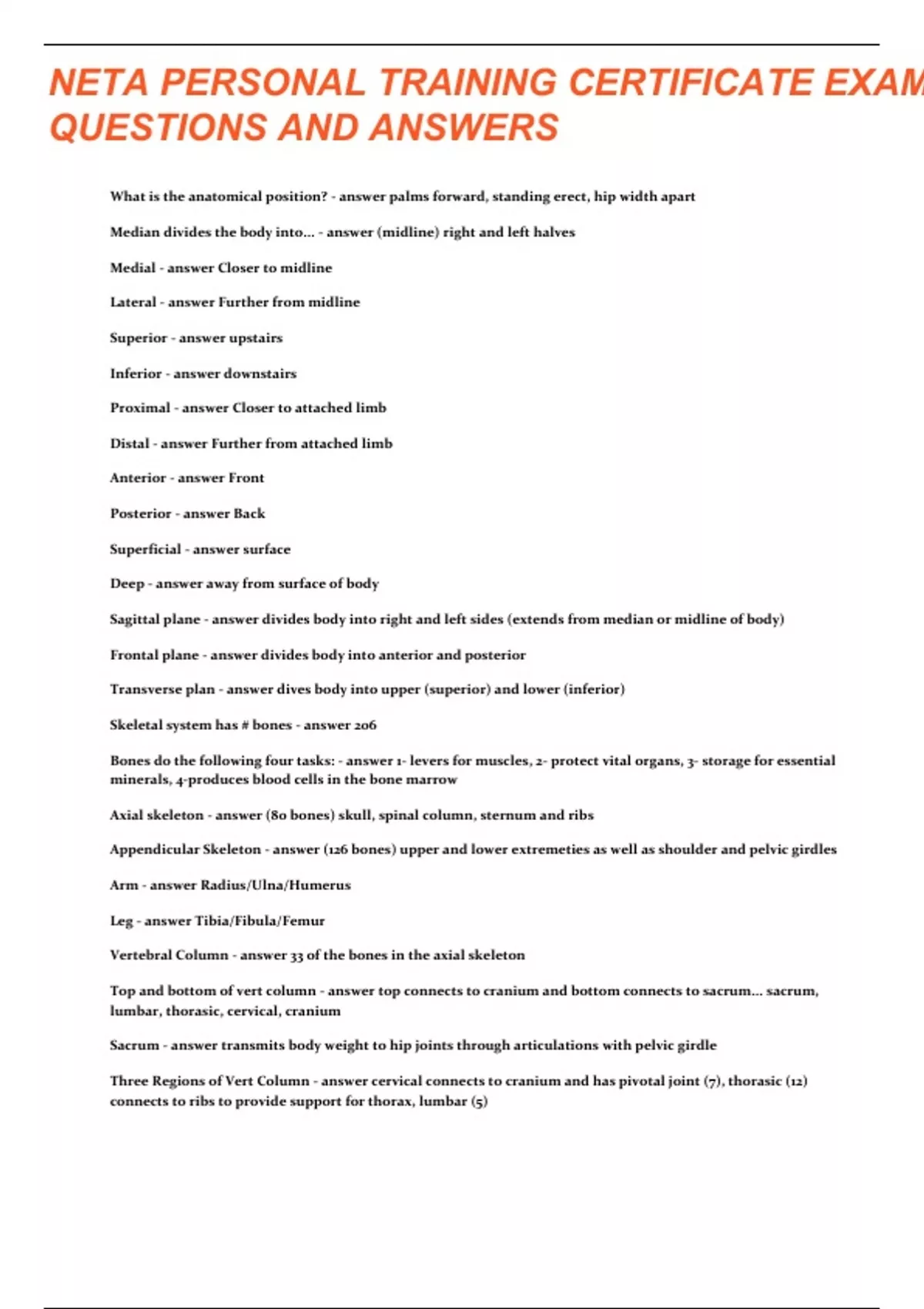 NETA PERSONAL TRAINING CERTIFICATE EXAM QUESTIONS AND ANSWERS