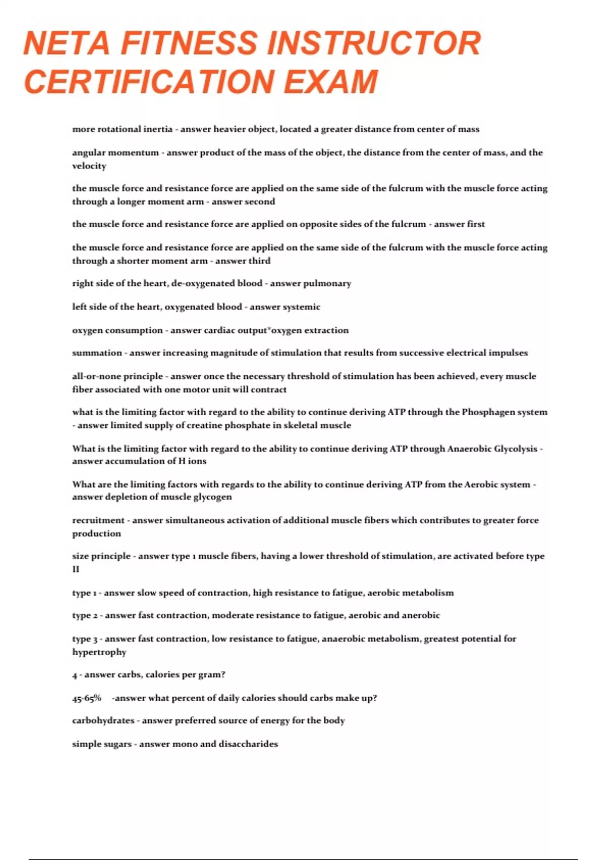 NETA FITNESS INSTRUCTOR CERTIFICATION EXAM QUESTIONS AND ANSWERS