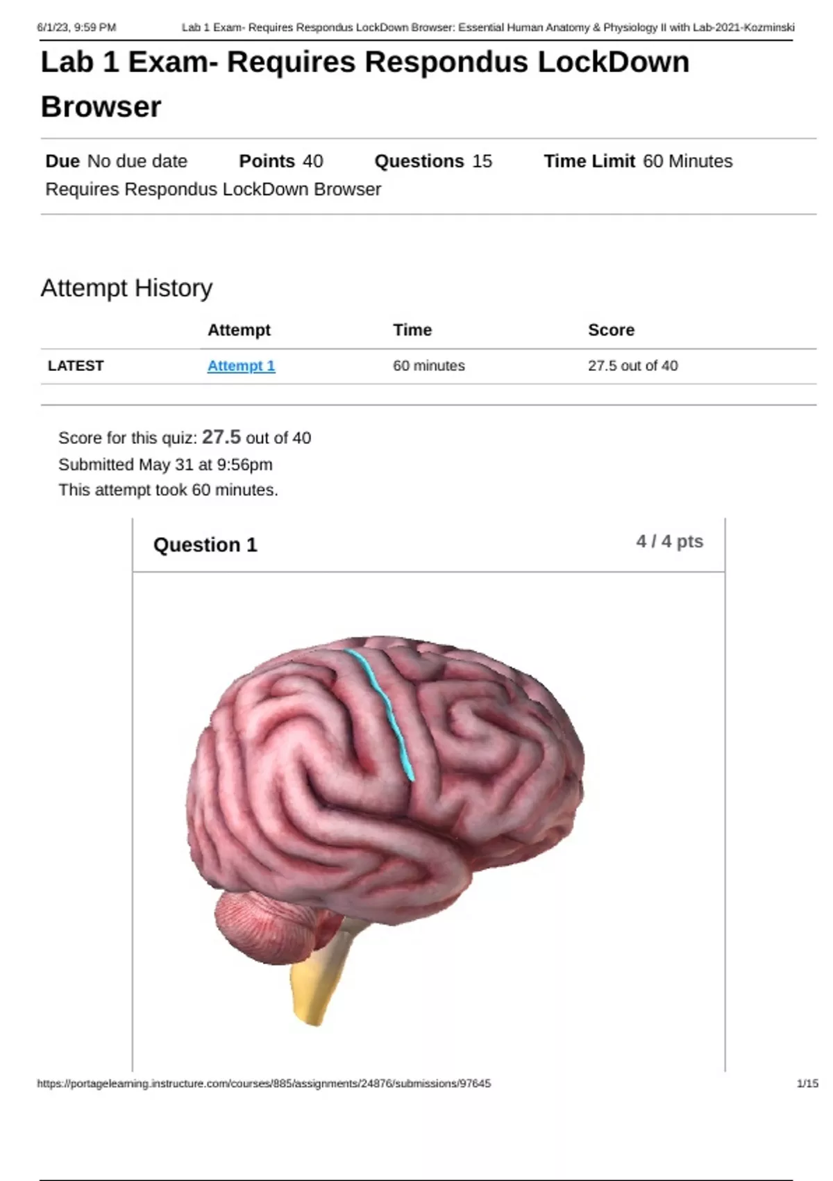 The blue line in the picture above is called the __________________. central sulcus Central sulcus Question 2 3 / 3 pts The part of the brain (indicated by the blue pin) in the picture above is