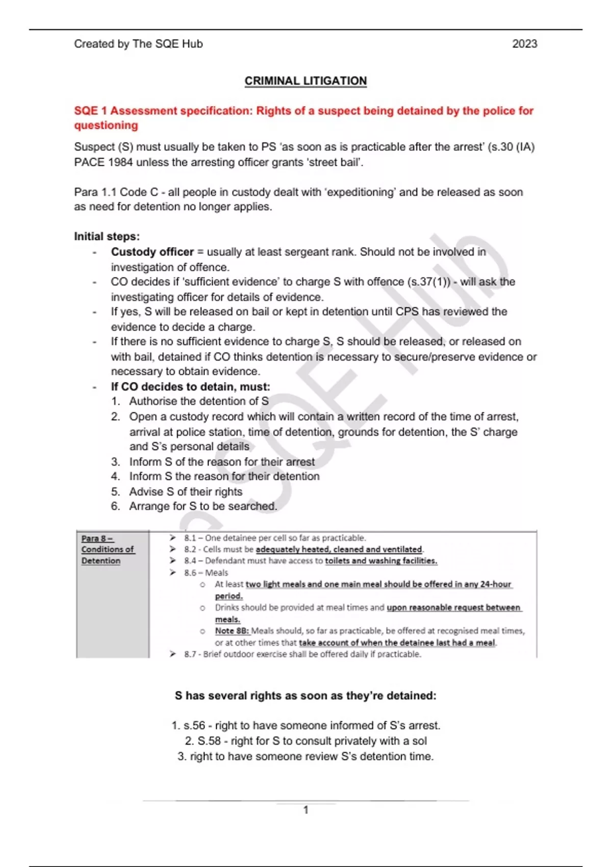 SQE 1 Assessment specification: Rights of a suspect being detained by the police for