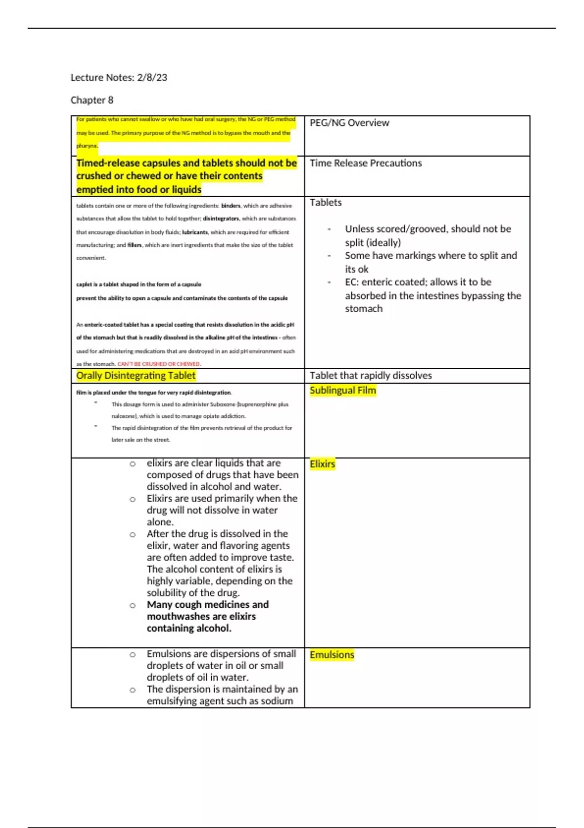 Lecture Notes for VN 200 Pharmacology CHs 8-10 for unitek college lvn program