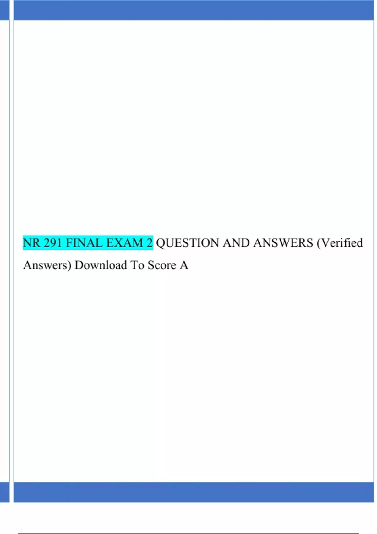 NR 291 FINAL EXAM 2 QUESTION AND ANSWERS (Verified Answers) Download To Score A