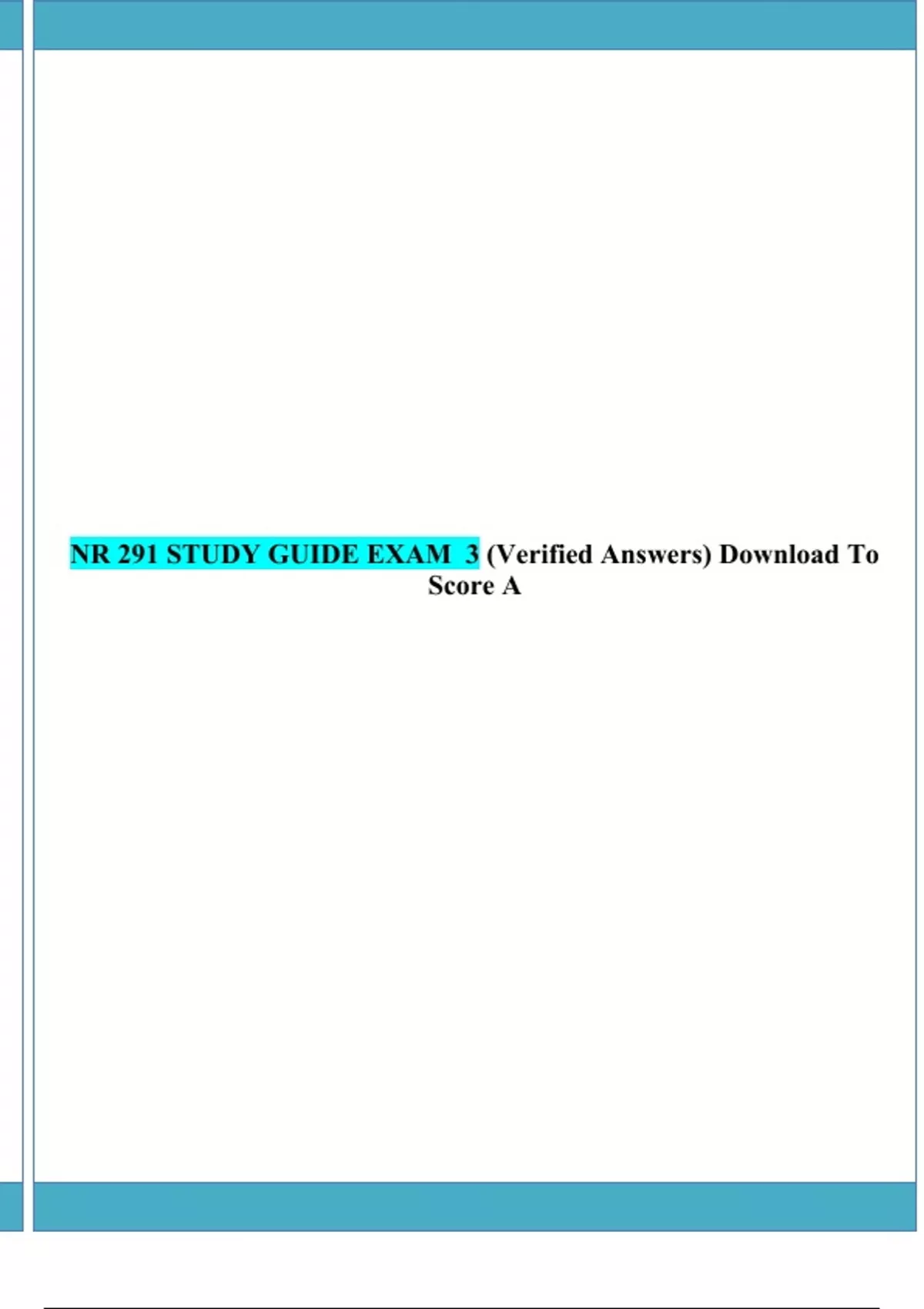 NR 291 STUDY GUIDE EXAM 3 (Verified Answers) Download To Score A