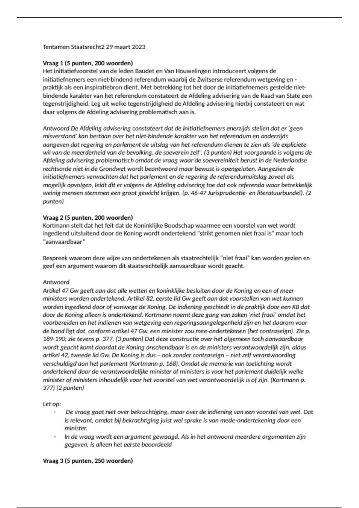 Antwoord Toetsing ex ante houdt in dat de grondwettigheid van wetten (in formele zin) wordt