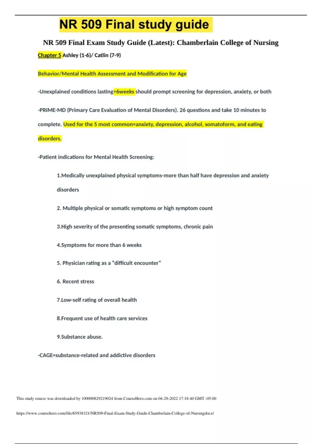 NR 509/ NR509 Advanced Physical Assessment Final Study Guide