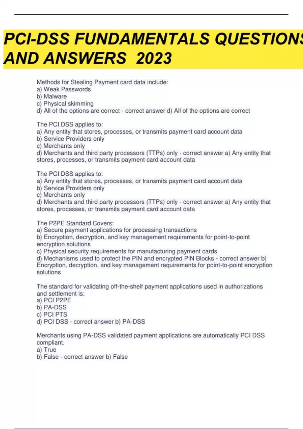 PCI DSS FUNDAMENTALS EXAM 100 QUESTIONS WITH VERIFIED CORRECT SOLUTIONS/A+ GRADE/2023