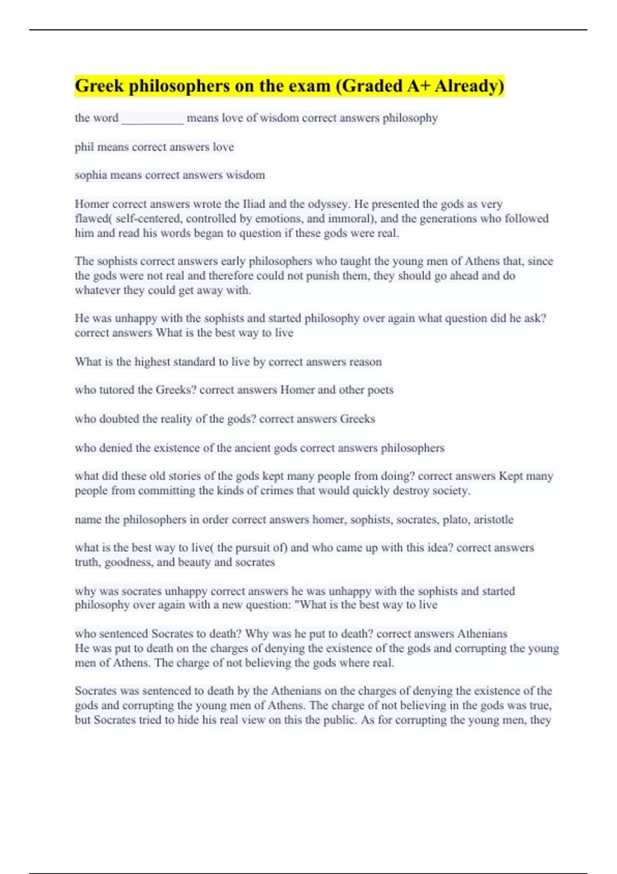 Greek philosophers on the exam (Graded A+ Already)