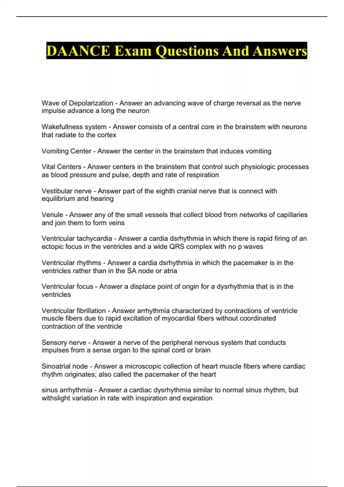 DAANCE Exam Questions And Answers 2023
