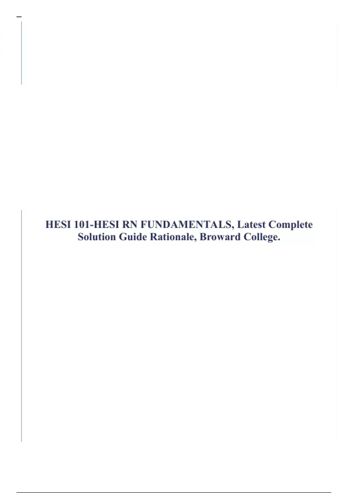 HESI 101-HESI RN FUNDAMENTALS, Latest Complete Solution Guide Rationale, Broward College.