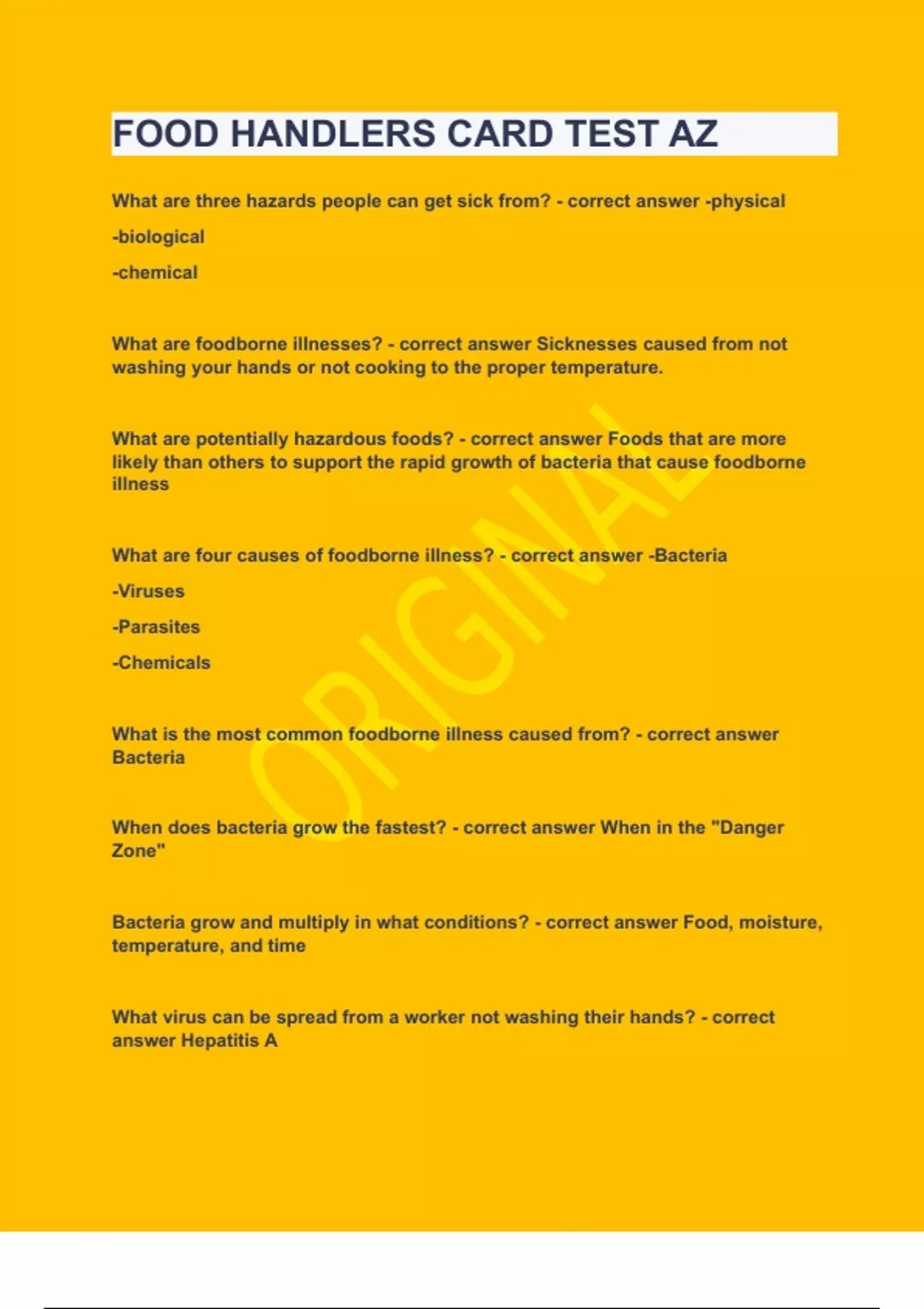 FOOD HANDLERS CARD TEST AZ|2023 LATEST UPDATE|GUARANTEED SUCCESS