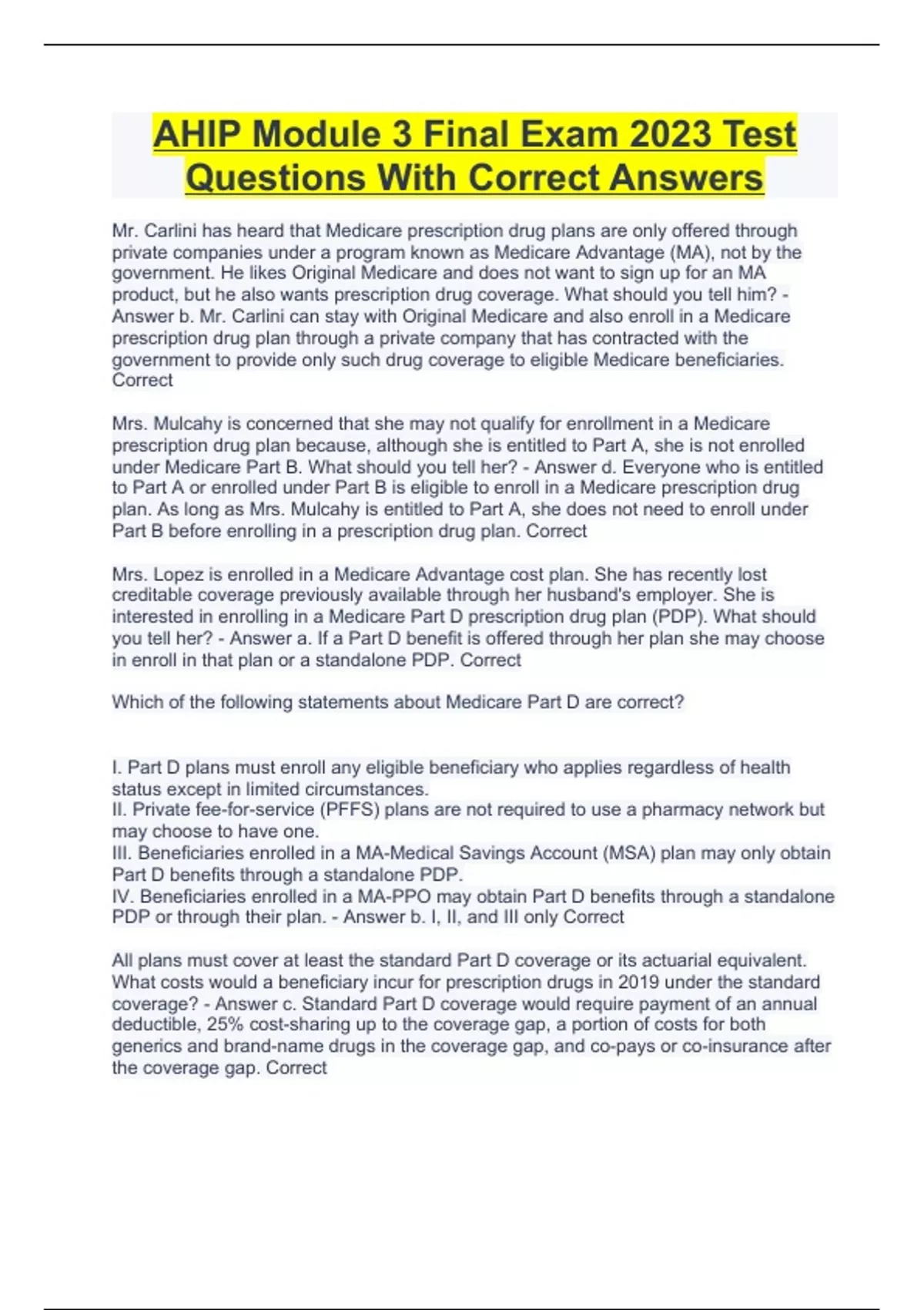 AHIP Module 3 Final Exam 2023 Test Questions With Correct Answers