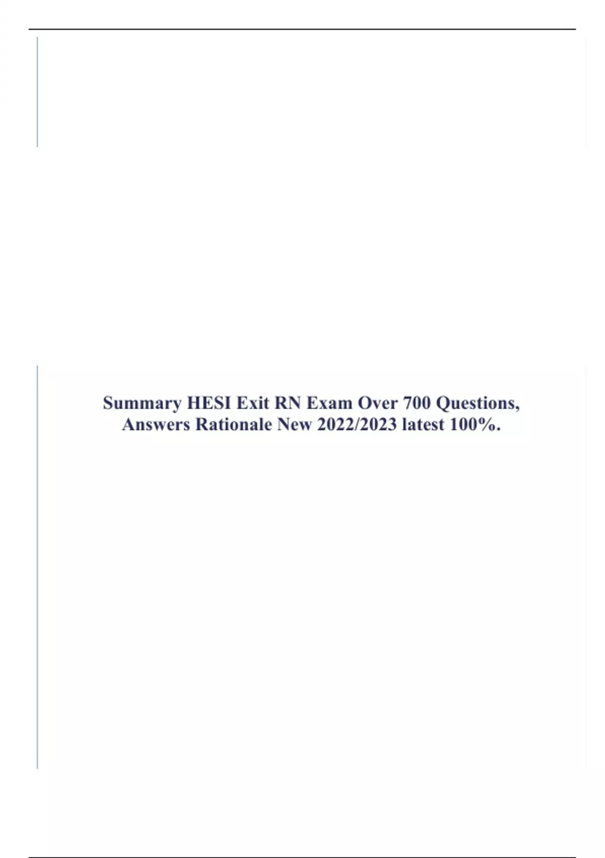Summary HESI Exit RN Exam Over 700 Questions, Answers Rationale New 2022/2023 latest 100%.