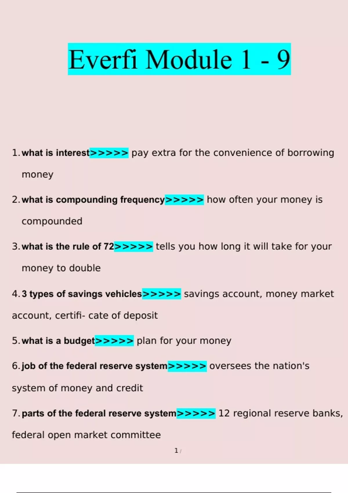 EVERFI MODULE 1 : FINANCIAL LITERACY BANKING BASICS,MODULE, 2: EMPLOYMENT & TAXES, MODULE 3: BUDGETING, MODULE 4:CONSUMER SKILLS, MODULE 5 :CREDIT AND DEBT, MODULE 6 FINANACING HIGHER EDUCATION. COMPLETE COURSE 100% ALL DONE EXAM LATEST UPDATE SOLUTION