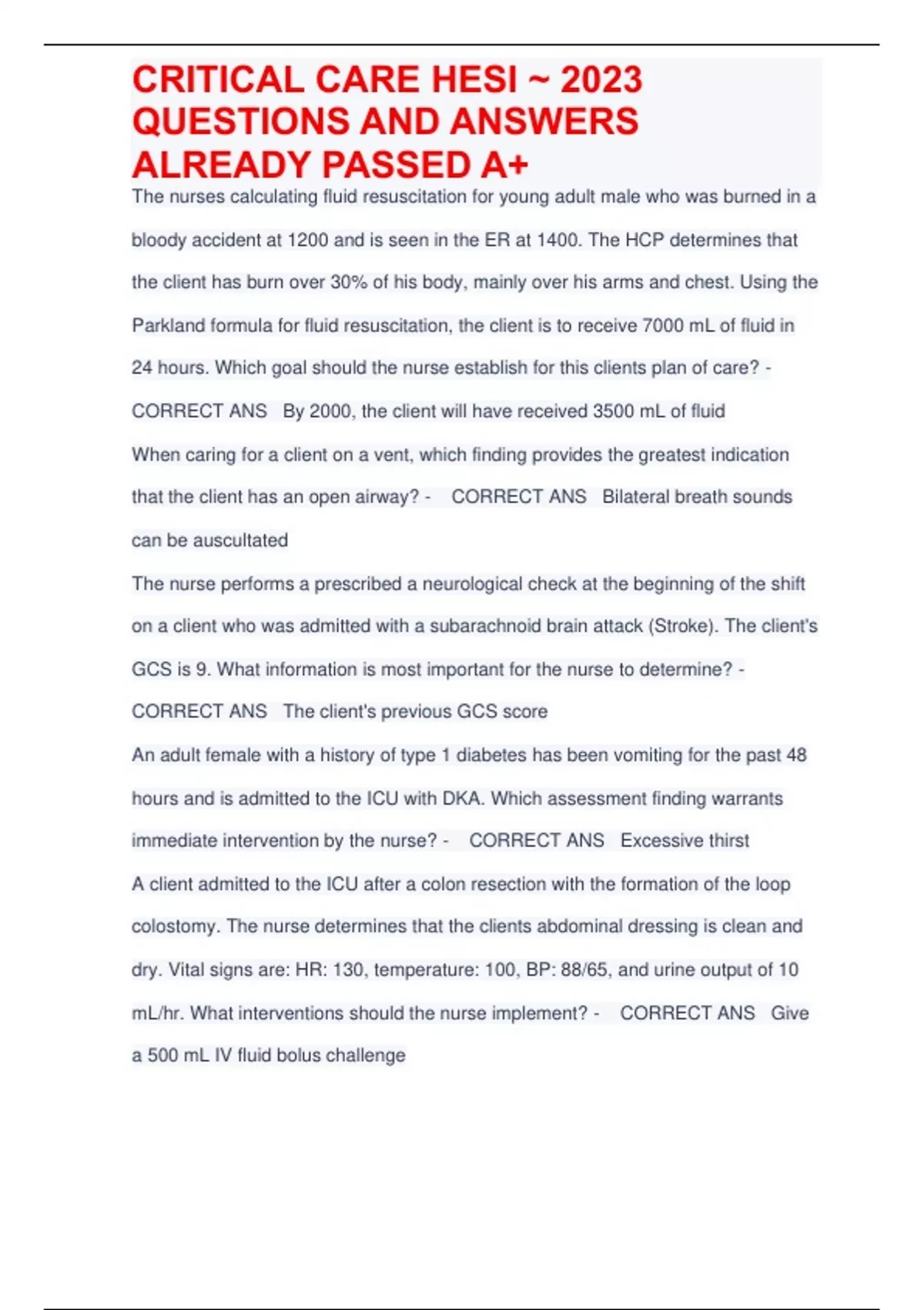 CRITICAL CARE HESI ~ 2023 QUESTIONS AND ANSWERS ALREADY PASSED A+