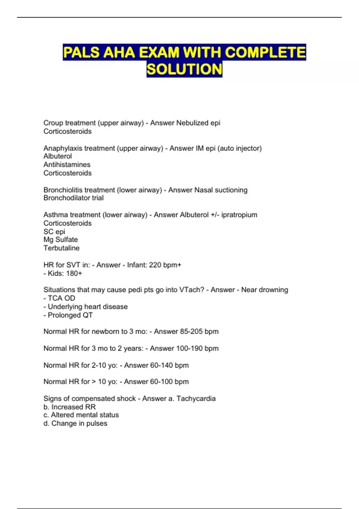 pals aha exam with complete solution