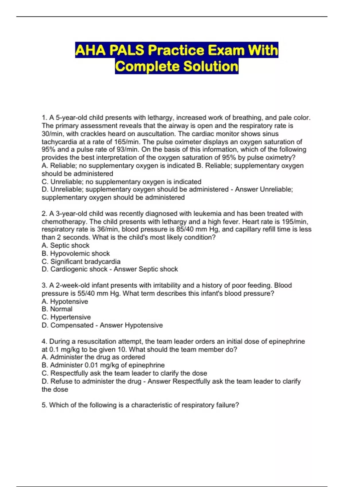 PALS PACKAGED EXAMS WITH COMPLETE SOLUTIONS