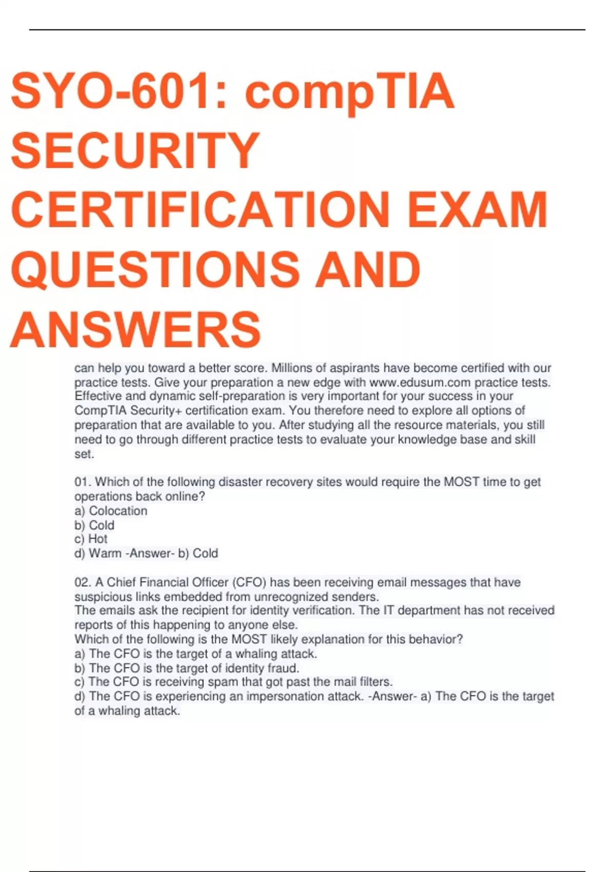 SY0-601: CompTIA Security Certification Exam Questions and Answers