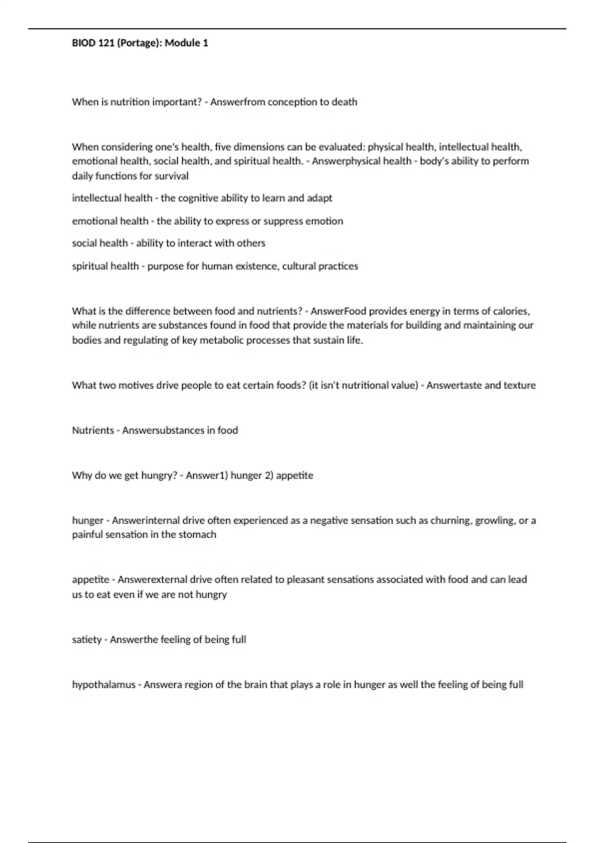 BIOD 121 (Portage): Module 1 Questions and Answers with Correct Solutions 2023.