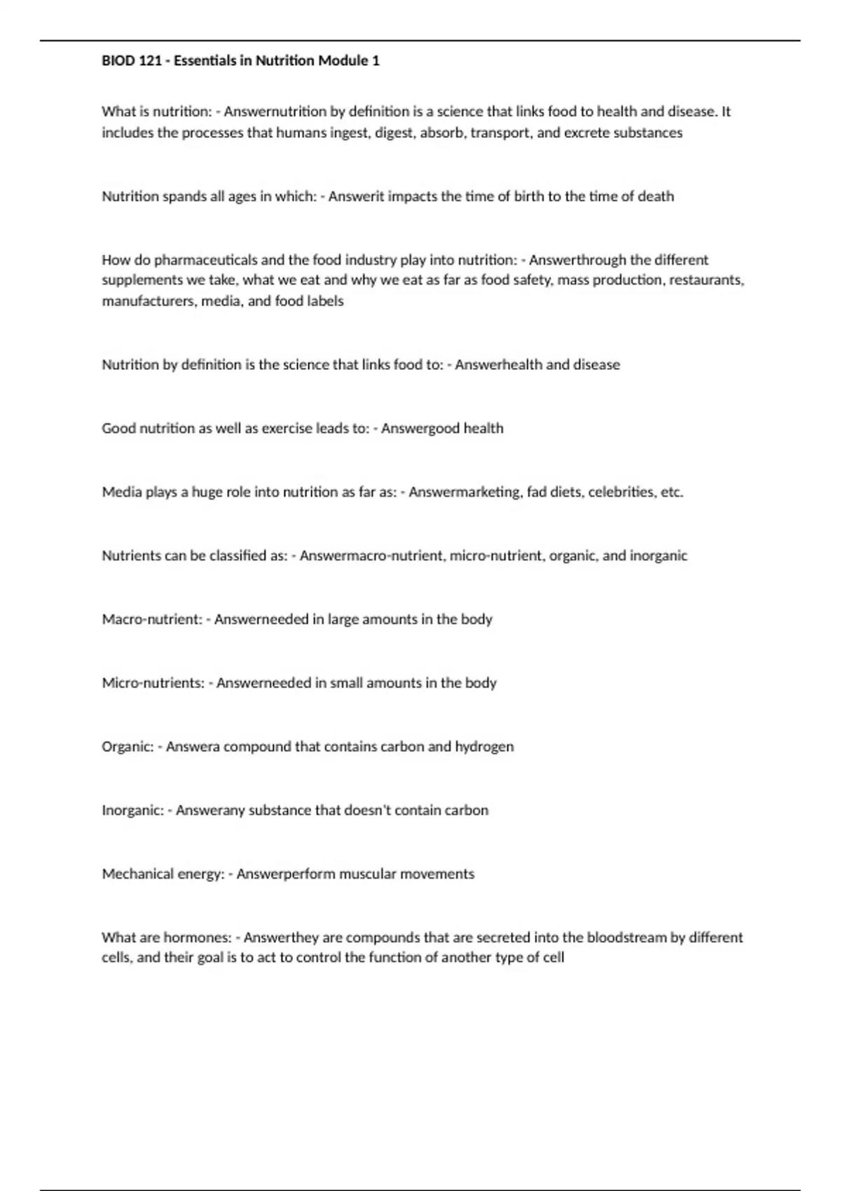 , BIOD 121 - Essentials in Nutrition Module 1