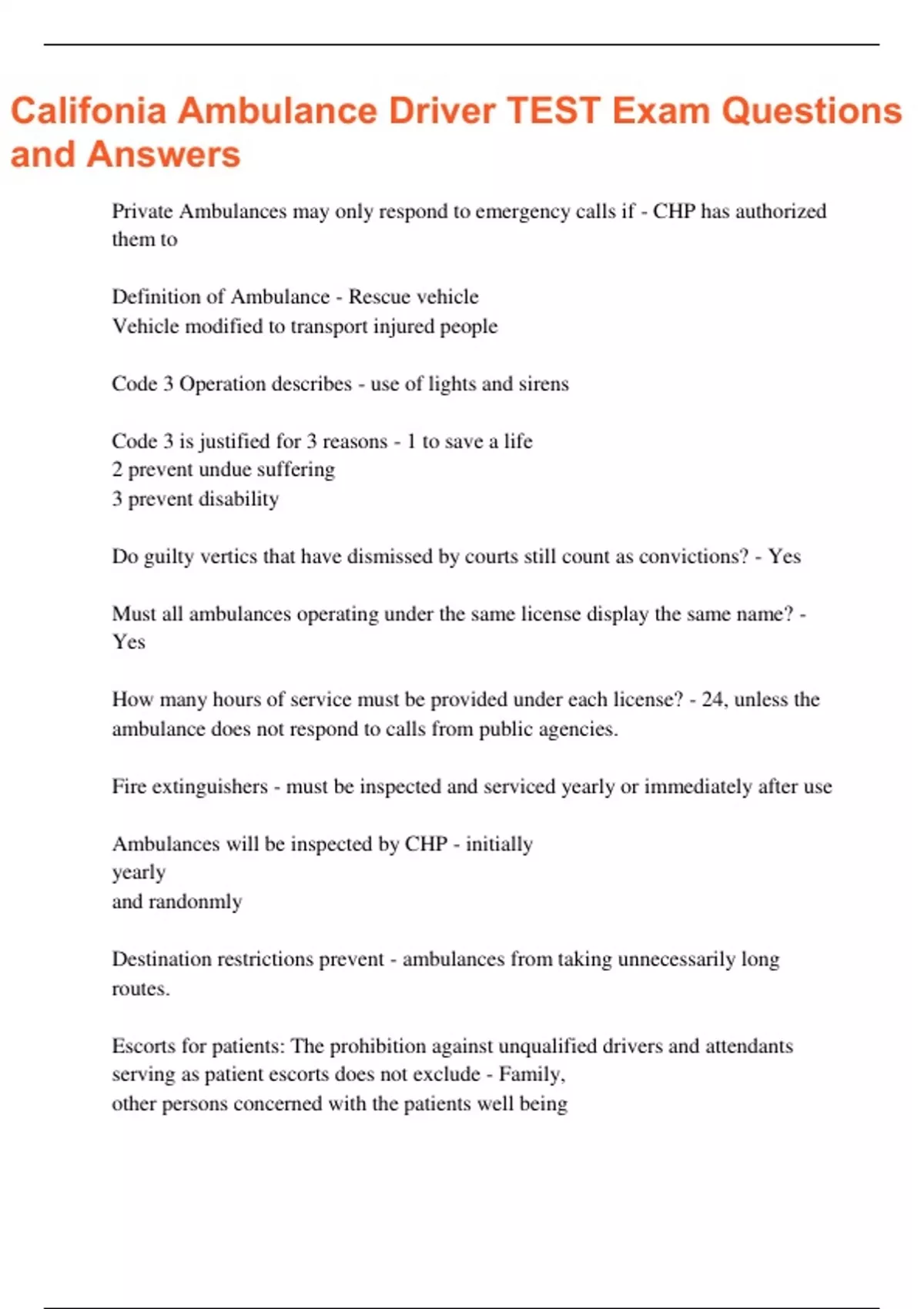 Califonia Ambulance Driver TEST Exam Questions and Answers