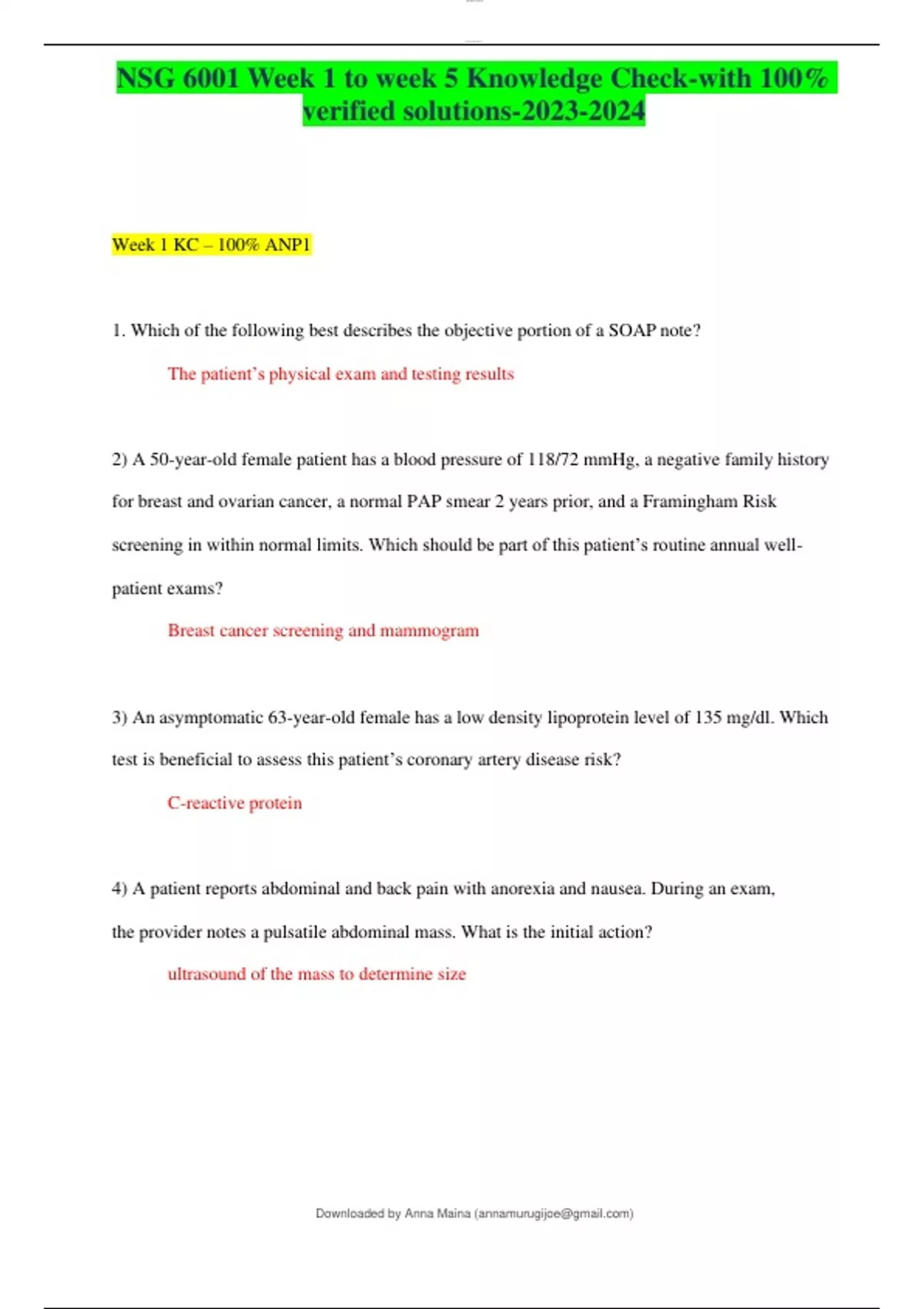 NSG 6001 Week 1 to week 5 Knowledge Check-with 100% verified solutions-