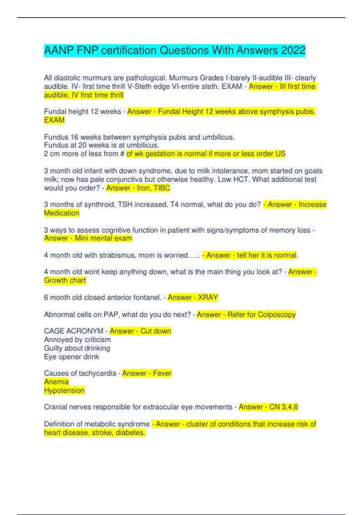 AANP FNP certification Questions With Answers