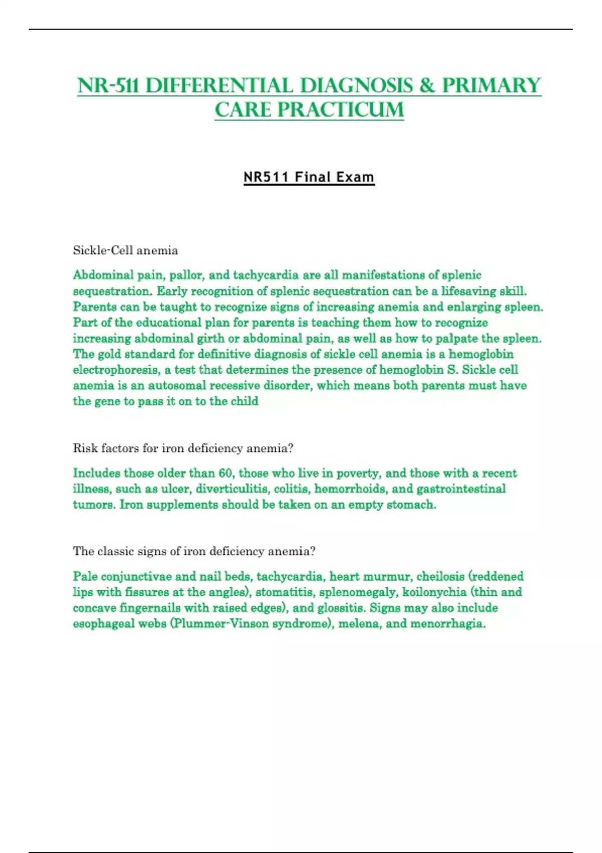 Final Exam - NR511 / NR 511 (Latest 2023 / 2024) : Differential Diagnosis & Primary Care Practicum - Chamberlain