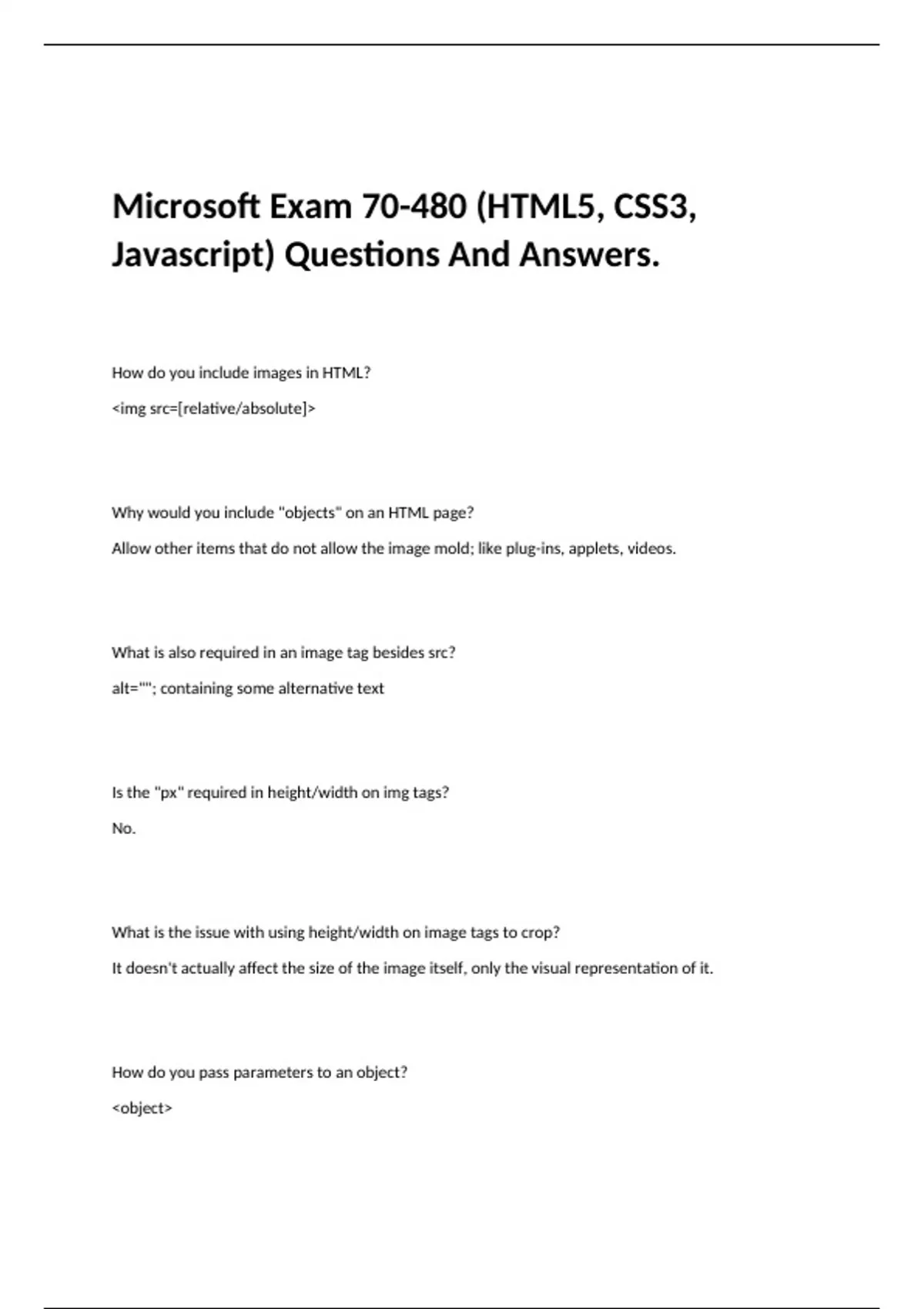 Microsoft Exam 70-480 (HTML5, CSS3, Javascript)Questions And Answers.