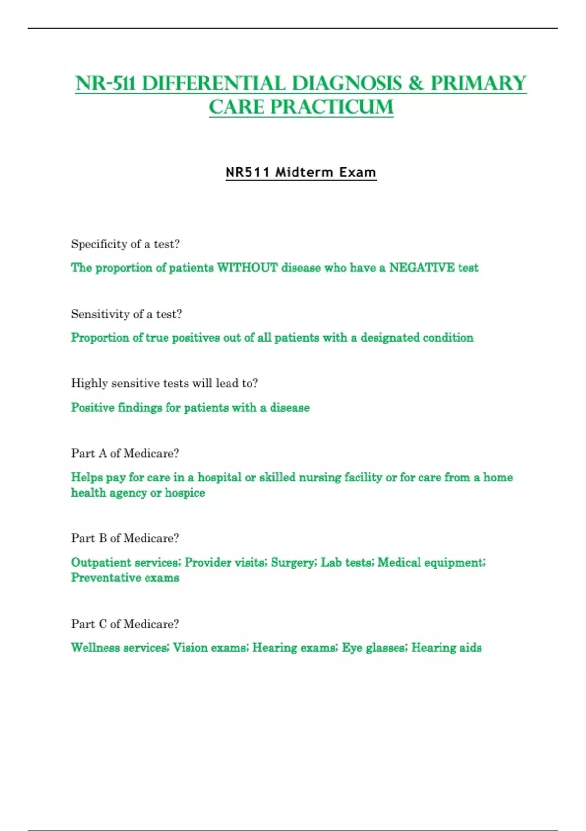 Midterm Exam - NR511 / NR 511 (Latest 2023 / 2024) : Differential Diagnosis & Primary Care Practicum - Chamberlain