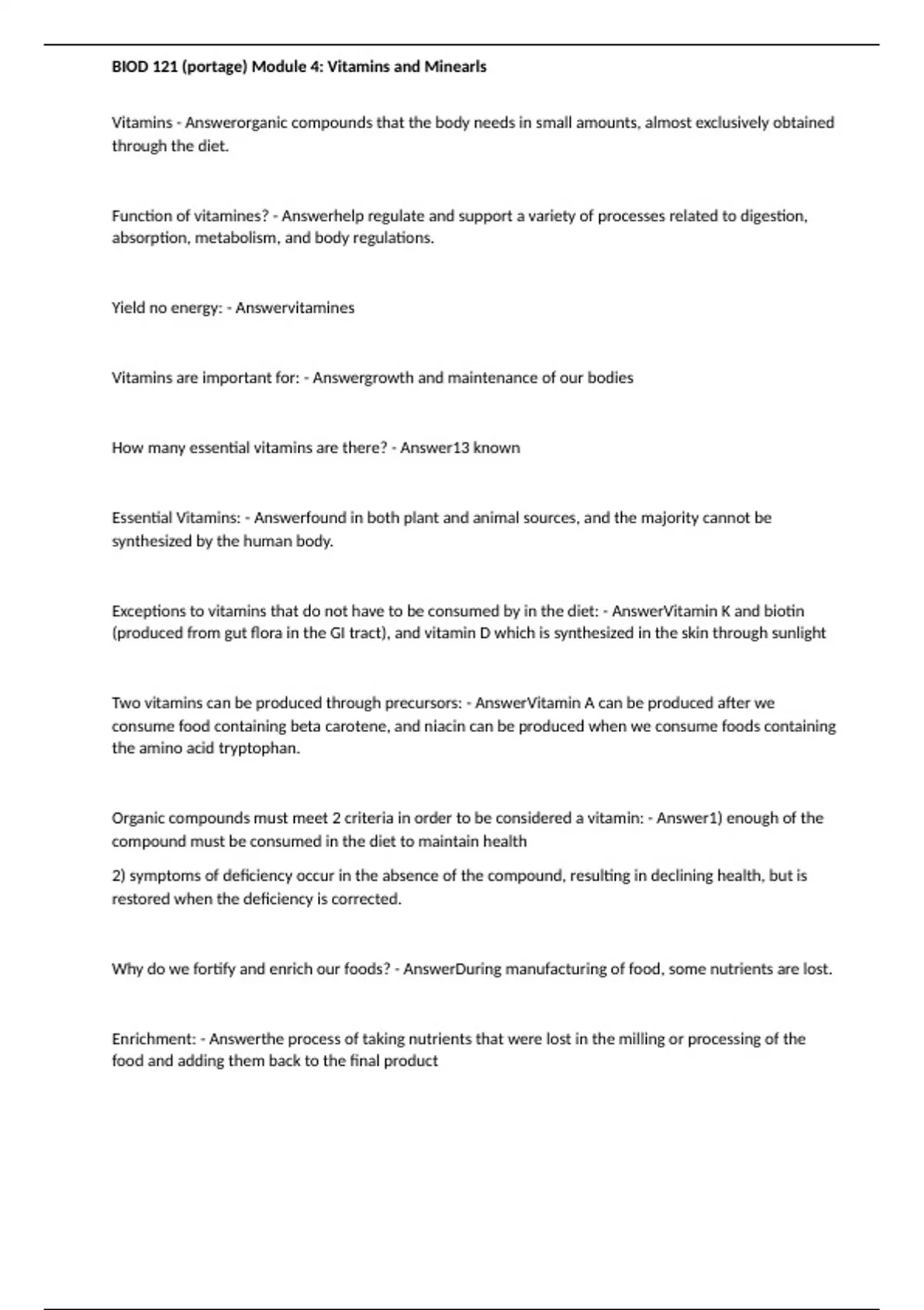 BIOD 121 (portage) Module 4: Vitamins and Minearls